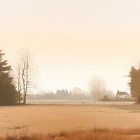Schilderij met rustige beige kleuren: Harmonious Tranquility - een landschapsschilderij met als thema rust en schoonheid van eenvoud. Rustige beige en pastel kleuren geven rust en kalmte.