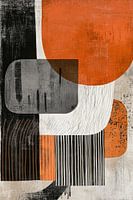 Beige Zen Balans - Dit is een abstract schilderij met een harmonieuze compositie van organische en geometrische vormen in tinten van beige, zwart en oranje, wat een rustige en moderne Zen-uitstraling geeft.