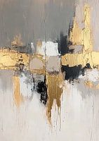 Details: abstract schilderij, moderne kunst, aardetinten, goud, beige, grijs, zwart, verf, kunstwerk