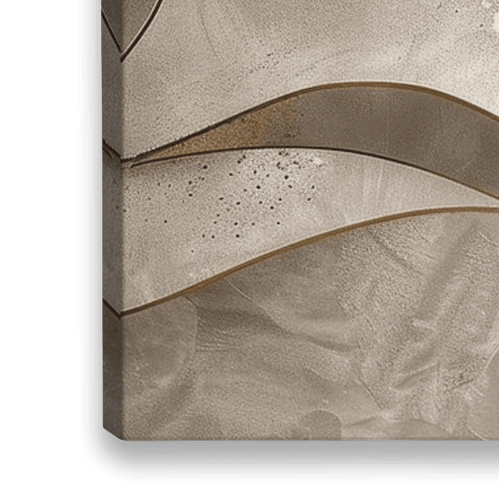 Een abstract digitaal schilderij straalt eenvoud en verfijning uit. Met een palet van zachte beige tinten en accenten van goud creëert het een rustige sfeer. De vormen vloeien moeiteloos in elkaar over, zonder scherpe randen, wat een gevoel van harmonie geeft.