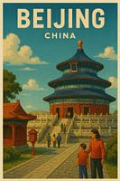 Een schilderachtig werk dat de majestueuze Tempel van de Hemel in Beijing vastlegt, omringd door een helderblauwe lucht en zachte wolken. De levendige kleuren en vredige wandeling van een vader met zijn kind geven het beeld een nostalgisch gevoel. Perfect voor in de woonkamer om reizende sterren en familiebanden te vieren.
