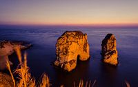De "duivenrotsen" voor de kust van Beiroet, Libanon. Een prachtige, warme stad in het Midden-Oosten.
