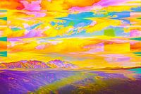Uitzicht in Zuid-Tirol op lucht en bergen. Ik vernietig foto's met een willekeurig algoritme. De resultaten zijn futuristische "glitch art" werken.