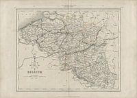 Landkaart van het Belgische grondgebied met de provincies, rivieren, steden en wegen.