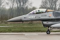 F-16 van de Belgische Luchtmacht (FA-103) staat op het punt te vertrekken vanaf vliegbasis Leeuwarden.