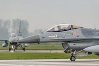 F-16 van de Belgische Luchtmacht (FA-124) staat op het punt te vertrekken vanaf vliegbasis Leeuwarden.