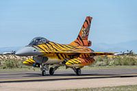 Deze prachtige F-16 is van het het 31ste 'Tiger' Squadron van de Belgische luchtmacht. Ter gelegenheid van het 65-jarig bestaan van het squadron werd de F-16 op de foto voorzien van dit prachtig kleurenschema.