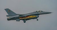 Deze F-16 (FA-95) van de Belgische luchtmacht staat op het punt te gaan landen op vliegbasis Kleine Brogel.