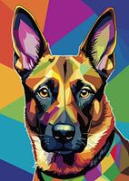 Deze pop-art Belgische Mechelaar vangt zijn alerte houding en intelligente ogen met scherpe grafische lijnen en levendige spatten van elektrisch blauw, vurig rood en neon geel. Een perfecte mix van kracht en elegantie, dit kunstwerk brengt een gedurfde, beschermende energie in moderne interieurs, waardoor het ideaal is voor hondenliefhebbers die kracht met artistieke flair waarderen.