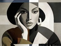 Abstract illustratie portret van een Italiaanse schoonheid in kubistische collage stijl met matte kleuren.