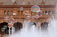 De Plaza de Espana in Sevilla Spanje vol met grote zeepbellen.