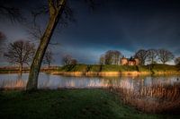 Slot Loevestein tijdens een de winterzonsopgang in Gelderland, Nederland