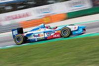 Wat een spektakel, deze klassieke Benetton Formule 1-auto in volle vaart over het TT Circuit in Assen. De kleuren spatten van het beeld en de beweging is voelbaar tot in de vezels van de foto. De banden vervagen in snelheid, het chassis helt licht naar binnen in de bocht, en de achtergrond vervaagt tot een dynamisch kleurenspoor. Dit is autosport op z’n mooist, rauw, snel en nostalgisch. Voor jonge autosportfans is dit een droombeeld, een icoon uit de geschiedenis van de Formule 1 die nog altijd even hard klinkt en schittert. De Benetton-livery, het geluid, het asfalt van Assen, alles klopt. Deze foto is niet alleen een hommage aan het verleden, maar ook een prikkel voor nieuwe generaties. Perfect voor op de muur van een kinderkamer waar passie voor snelheid groeit.