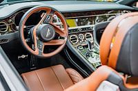 Bentley Continental GT V8 Cabrio auto-interieur. De Bentley Continental GT V8 Cabriolet biedt een weelderig en geraffineerd interieur dat moderne technologie combineert met tijdloos vakmanschap. Elk detail is zorgvuldig ontworpen om een sfeer van luxe, comfort en prestaties te creëren, waardoor het een opvallende verschijning is in de wereld van grand tourers.