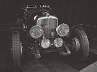 Vooraanzicht met grote koplampen van deze Bentley Straight Six uit de 1930's.