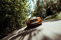 Rijdende Bentley tussen de bomen.