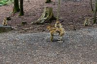 Berber Makaak met jong in wildpark Daun, Duitsland.