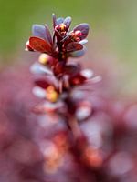Close-up van een rode Berberus haag met nieuwe bloemknoppen.