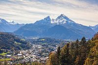 Berchtesgaden met Watzmann in de herfst, Berchtesgaden, Berchtesgadener Land, Opper-Beieren, Beieren, Duitsland