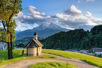 Uitzicht met de zaligmakende kapel (ook: Kirchleitn-kapel of kapel bij Lockstein) in de richting van Watzmann op een zomeravond in augustus.