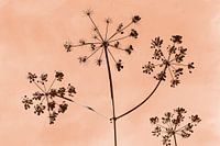 Deze botanische print brengt kleur in je interieur. De mooie zachte perzik roze achtergrond in dit werk past in veel moderne interieurstijlen. Een mooi romantisch beeld met het silhouet van de bloem van de berenklauw.