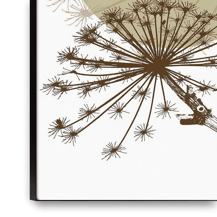Deze artistieke weergave toont een gestileerde afbeelding van een berenklauw (Heracleum) gecombineerd met houtachtige takken op een minimalistische achtergrond. De illustratie is opgebouwd uit eenvoudige vormen en aardetinten: bruin en olijfgroen. De berenklauw is weergegeven in een fijne, luchtige lijnstructuur die contrasteert met de…