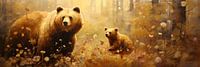 Een kleurrijk digitaal schilderij van een moeder grizzly en haar speelse jong. Het werk geeft een warme en rustieke uitstraling van aan interieur!