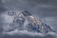 De bergtoppen van 'Storm Mountain' in Canada werden af en toe zichtbaar tussen de bewolking door.