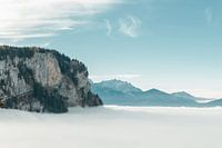 Berg met kleurrijk naaldbos boven de wolken in Dornbirn, Oostenrijk