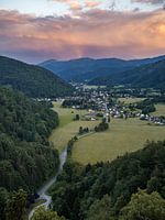 Een mooi bergdal in de Vogezen, met op het eind een waterval. Foto is genomen vanaf de ruïne van het kasteel bij het Lac de Kruth-Wildenstein.