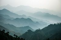 Deze indrukwekkende foto toont een reeks bergen gehuld in zachte tinten blauw en grijs in de ochtendmist. De delicate contouren van de pieken en het rustgevende kleurenpalet creëren een vredige, bijna meditatieve sfeer. Dit kunstwerk is perfect voor natuurliefhebbers en buitenmensen en brengt de sublieme schoonheid van de bergen bij je thuis. Het is ideaal om een kamer op te fleuren en een oase van rust te creëren.