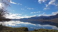 Rimpelloos spiegelmeer op het Zuidereiland van Nieuw-Zeeland in de winter.