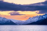 Bergen en rotsen in de winter bij Ørnes in Noorwegen.
