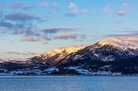 Bergen en rotsen in de winter bij Trondheim in Noorwegen.