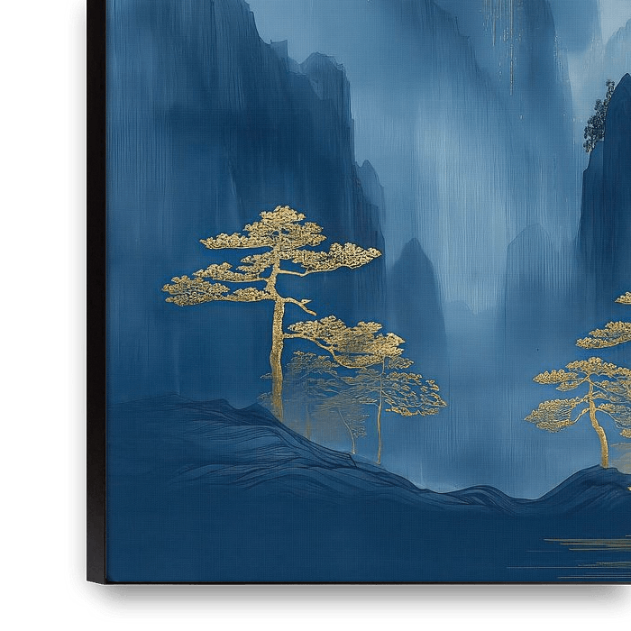 Bergen in Azie in donkerblauw. Dit kunstwerk voert de kijker mee naar adembenemende berglandschappen, geïnspireerd op de schilderachtige pracht van verschillende regio's. De bergen rijzen majestueus op uit het landschap als imposante natuurlijke monumenten, gehuld in een prachtig palet van blauwe tinten die de diepte en het mysterie van…
