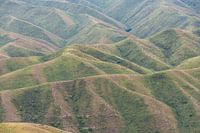 Bergen en groene heuvels in Kirgizstan vanaf de Kaldamo Pas