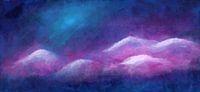 Mountains in the Morning Mist is een acryl schilderij in horizontaal panorama formaat geschilderd door de kunstenaar Karen Kaspar. Het schilderij toont een geabstraheerde bergketen. De witte besneeuwde bergtoppen rijzen op uit de ochtendmist, die paars oplicht in de zonsopgang. Een groot deel van de lucht is nog gehuld in donker indigo blauw, maar op sommige plaatsen begint het al lichter te worden in lichter blauw en turquoise. Het schilderij is geschilderd met losse expressieve penseelstreken. 446