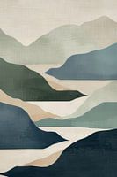 Het kleurenpalet van zachte groenen, bruinen, beiges en subtiele accenten van lichtblauw creëert diepte en dimensie, waardoor het gevoel van ruimte en sereniteit wordt versterkt. Elk element is zorgvuldig gekozen om de kalmerende schoonheid van de natuur over te brengen, met een focus op eenvoud en minimalisme.