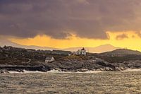 Bergen, rotsen en bakens bij Kristiansund in Noorwegen.