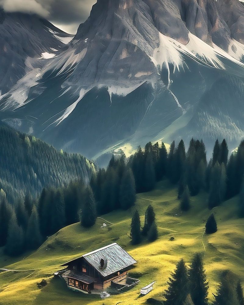 Dramatische sfeer met uitzicht over een berghut op een indrukwekkend bergpanorama in de Dolomieten