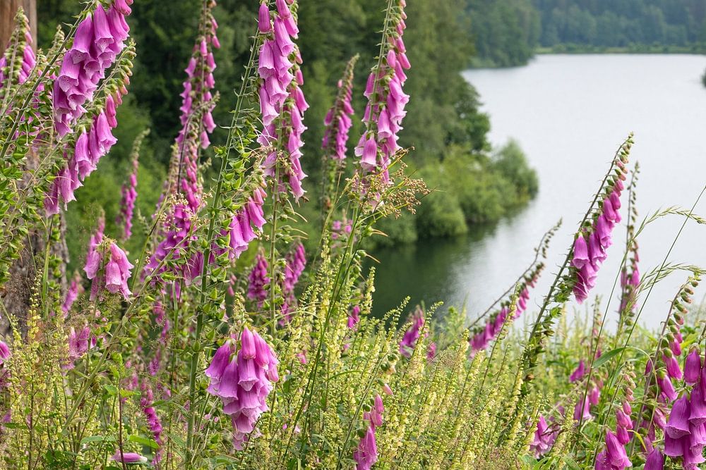 Panoramafoto van de Genkeltalsperre bij Marienheide, Bergisches Land, Duitsland