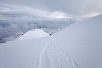 Berglandschap in de Alpen met bergbeklimmers. De foto is genomen in het Mont Blanc gebied, Frankrijk tijdens de Mountain Network Mont Blanc Expeditie. De alpinisten lopen in sneeuw en ijs op de Dôme du Goûter. Het lijkt misschien een winterlandschap, maar deze foto is gemaakt in Juni.
