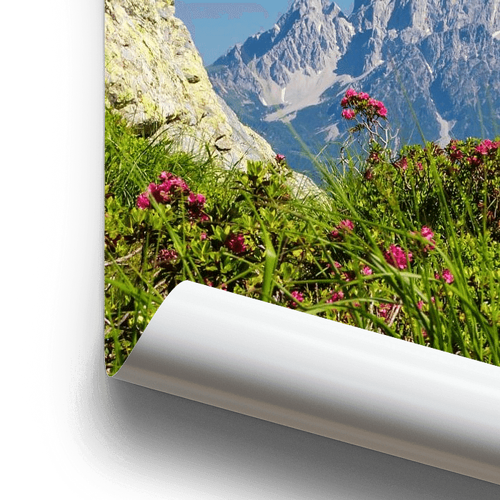 Op een almweide bloeien de alpenroosjes, in het Oostenrijks dialect ook wel "Almrausch" genoemd. Op de achtergrond staat het massief van de Dachstein met de drie bergtoppen Torstein, Mitterspitz en Hohe Dachstein. Samen vormen ze de Dachstein-Zuidwand die tot wel 1.000 meter hoog is en daarmee één van de hoogste steile wanden in de…