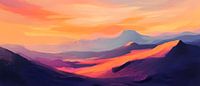 Er ontvouwt zich een fascinerend kleurenspel waarin zachte paars- en roodtinten botsen en de lucht omhullen in een romantische schemering. De zachte heuvels verweven zich harmonieus met de avondverlichting en creëren een rustgevende sfeer. Ideaal voor de woonkamer om gezelligheid en warmte te verspreiden.