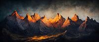 Majestueuze bergen rijzen op uit een mysterieuze schemering en gloeien op in warme gouden tinten die doen denken aan de zonsondergang. De krachtige aanwezigheid van de pieken brengt zowel rust als inspiratie. Dit indrukwekkende kunstwerk vindt zijn perfecte plaats in de woonkamer, waar het gesprekken stimuleert en een harmonieuze sfeer…