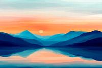 Een harmonieus kleurenspel van zachte blauwe tinten en warme zonsondergangnuances nodigt je uit om te dromen. De majestueuze bergen worden weerspiegeld in kalm water en creëren een vredige sfeer. Ideaal voor de slaapkamer om ontspannen te dromen of voor de woonkamer, waar het rust en een gevoel van de natuur in de sfeer brengt.