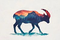 Dit artistieke motief vangt een majestueus berglandschap in een imposant dier in hartstochtelijke kleurtinten. De combinatie van gedurfd blauw en warm oranje wekt een indruk van vrijheid en avontuur. Ideaal voor de woonkamer, het brengt een harmonieuze combinatie van natuur en creativiteit in elke kamer.