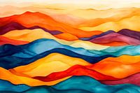 Kleurrijke golven lopen door een ruim panorama, waar warme roodtinten harmonieus samensmelten met koele blauwtinten. De zachte overgangen creëren een rustgevende sfeer en nodigen uit om te dromen. Dit kunstwerk is ideaal voor de woonkamer en geeft de kamer een uitnodigende en creatieve touch die elke kijker boeit.