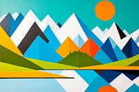 Een harmonieuze compositie van heldere kleuren en geometrische vormen ontvouwt zich in dit abstracte berglandschap. De levendige blauwe en oranje tinten en de duidelijke lijnen van de bergen creëren een levendige sfeer. Dit kunstwerk is ideaal voor een moderne woonkamer, brengt een frisse energie en inspireert de zintuigen.