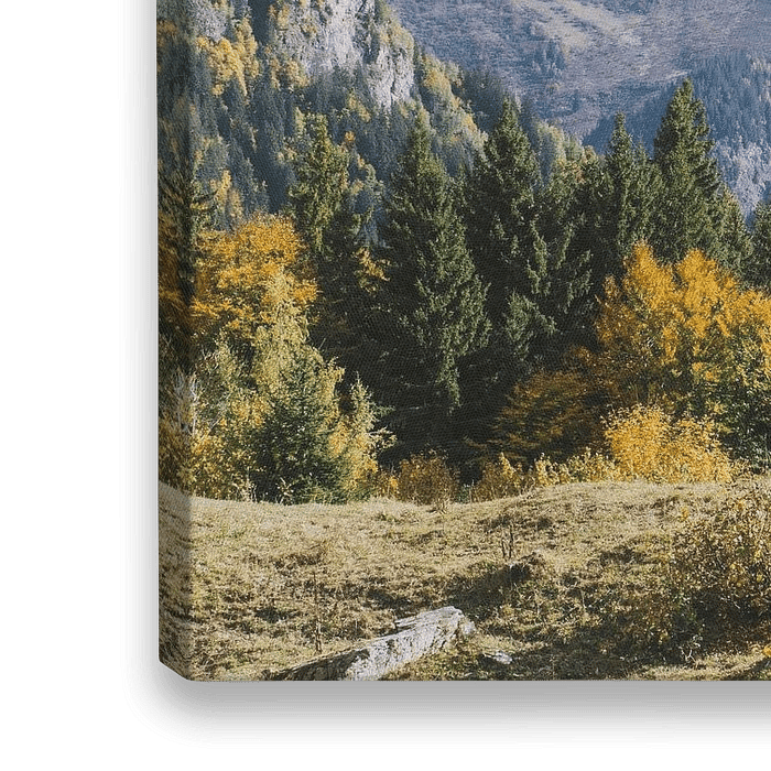 Koop dit landschapskunstwerk Berglandschap met almwei en bomen in herfstkleuren | Landschapsfotografie - Chamonix, Frankrijk van Merlijn Arina Photography op canvas, aluminium dibond, (ingelijste) fotoprint, behang en ArtFrame, op maat geprint in Fine-Art kwaliteit.